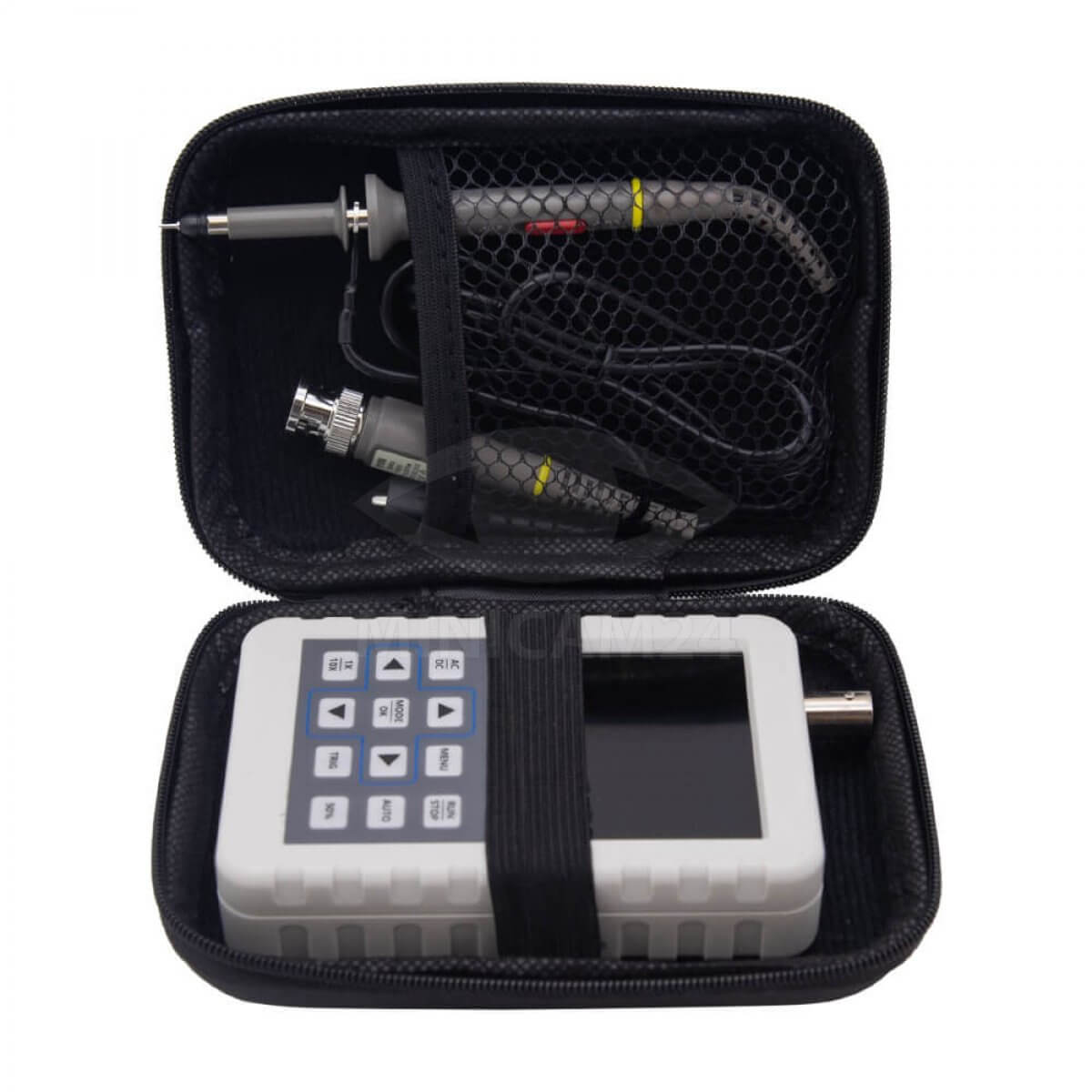Портативный осциллограф с полосой пропускания сигнала 30 МГц. Осциллограф оснащен цветным дисплеем для отображения формы сигнала и встроенной литиевой батареей, обеспечивающей до 4 часов непрерывной работы. Разрешение по вертикали 8 бит, высокая частота дискретизации. Прибор оборудован внутренней памятью для хранения 500 сигналов и интерфейсом microUSB для подключения к компьютеру. Осциллограф предназначен для диагностики и настройки низкочастотной радио и электронной аппаратуры, например, аудио систем или автомобильной электроники.